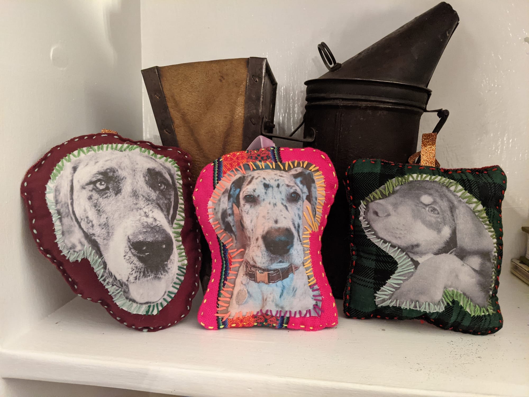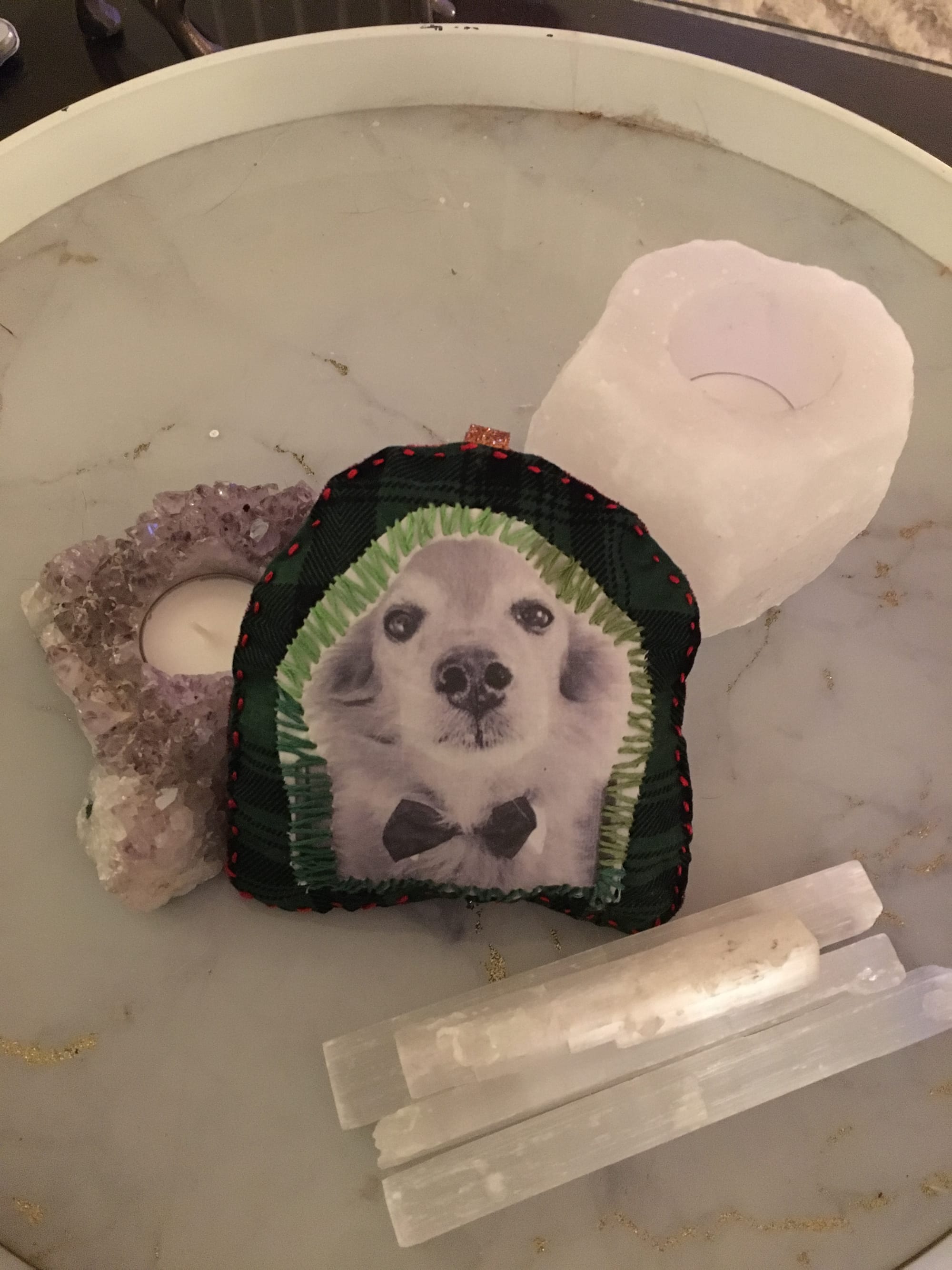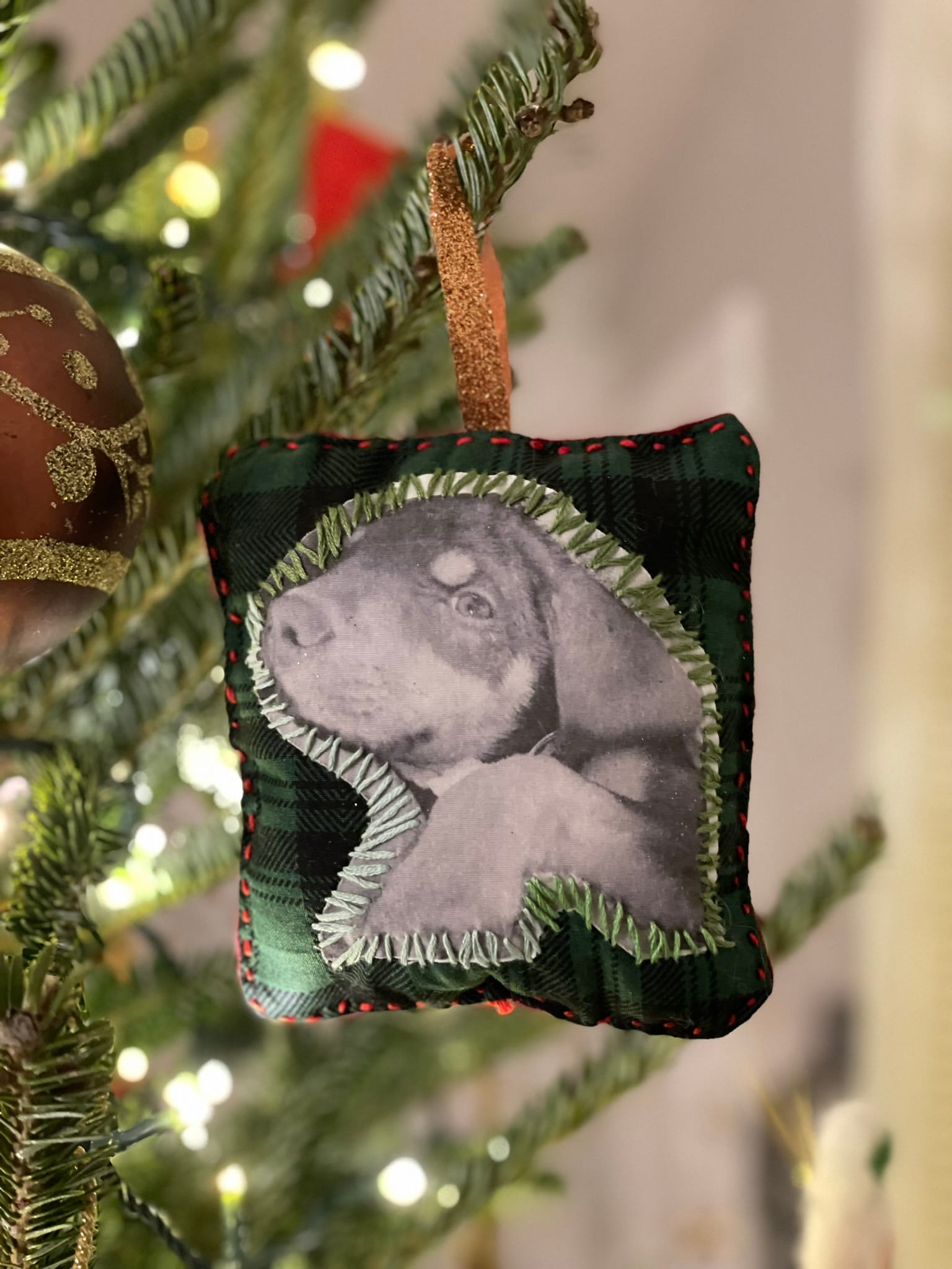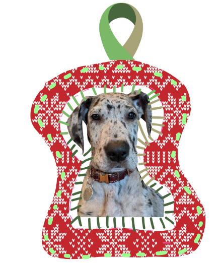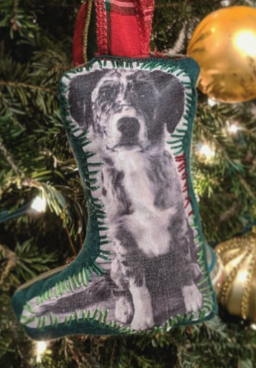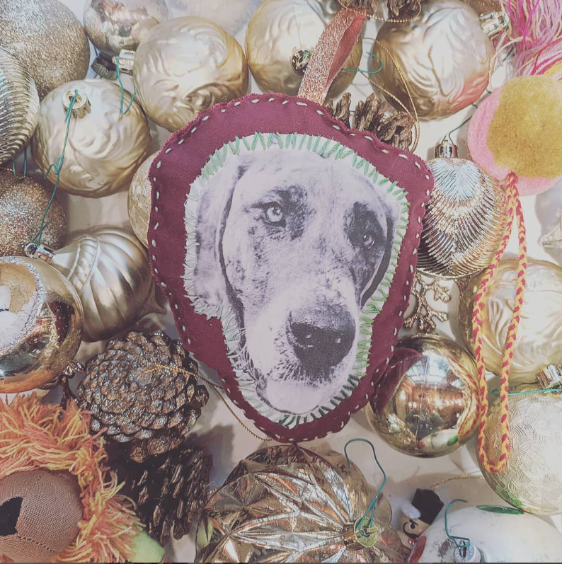 Despite my "grinch-like" attitude as my partner likes to call it, one of the only few pieces of decor that I look forward to are custom ornaments that I made from photos of my dogs. We have three of them: one each for Stevie and Pedro, and one for my first dog that I had when I became an adult, Norah. I've also made ornaments for all the dogs in other households in my immediate family, and I even sold them on Etsy a few years back.
