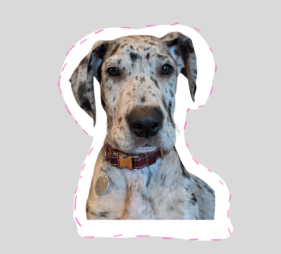 - Choose your favorite pet photo. This is going to be the hardest part. You're going to need to scroll through the thousands of pictures of your dog on your phone and choose only one. You'll see the adorable puppy photo of Stevie I chose below. THAT FACE! Once you have the photo, upload it to your favorite photo editor to remove the background. I chose Canva because I use it for so many things. You can even Google a free background remover and find one that works. Removing the background helps eliminate any ugly distractions from main show of the ornament, your pet.
