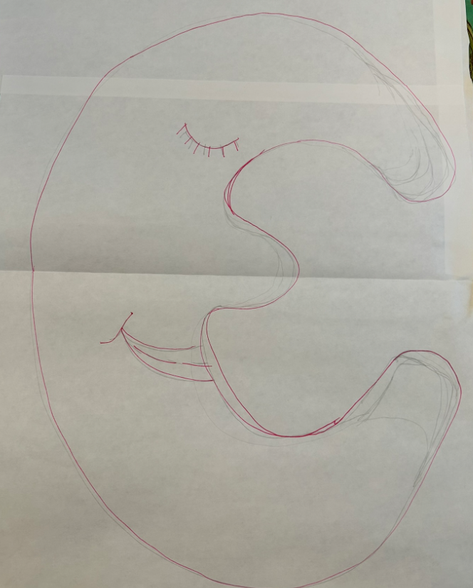 - Choose your design. My older sister influenced the decision for the shape of the plushy for my niece, a happy moon. She was inspired by Honey Dove vintage's Moon Baby, and therefore I was forcefully inspired by the Moon Baby plushies. As for the other inspo, my nephew has been very drawn to a felt penguin that I made as part of my younger sister's custom advent calendar last year. So we have it, a moon and a penguin (you can sketch any creature you'd like). I'll use the moon for most of the pictures in this blog because I forgot to take pictures of the progress of the penguin. My bad.