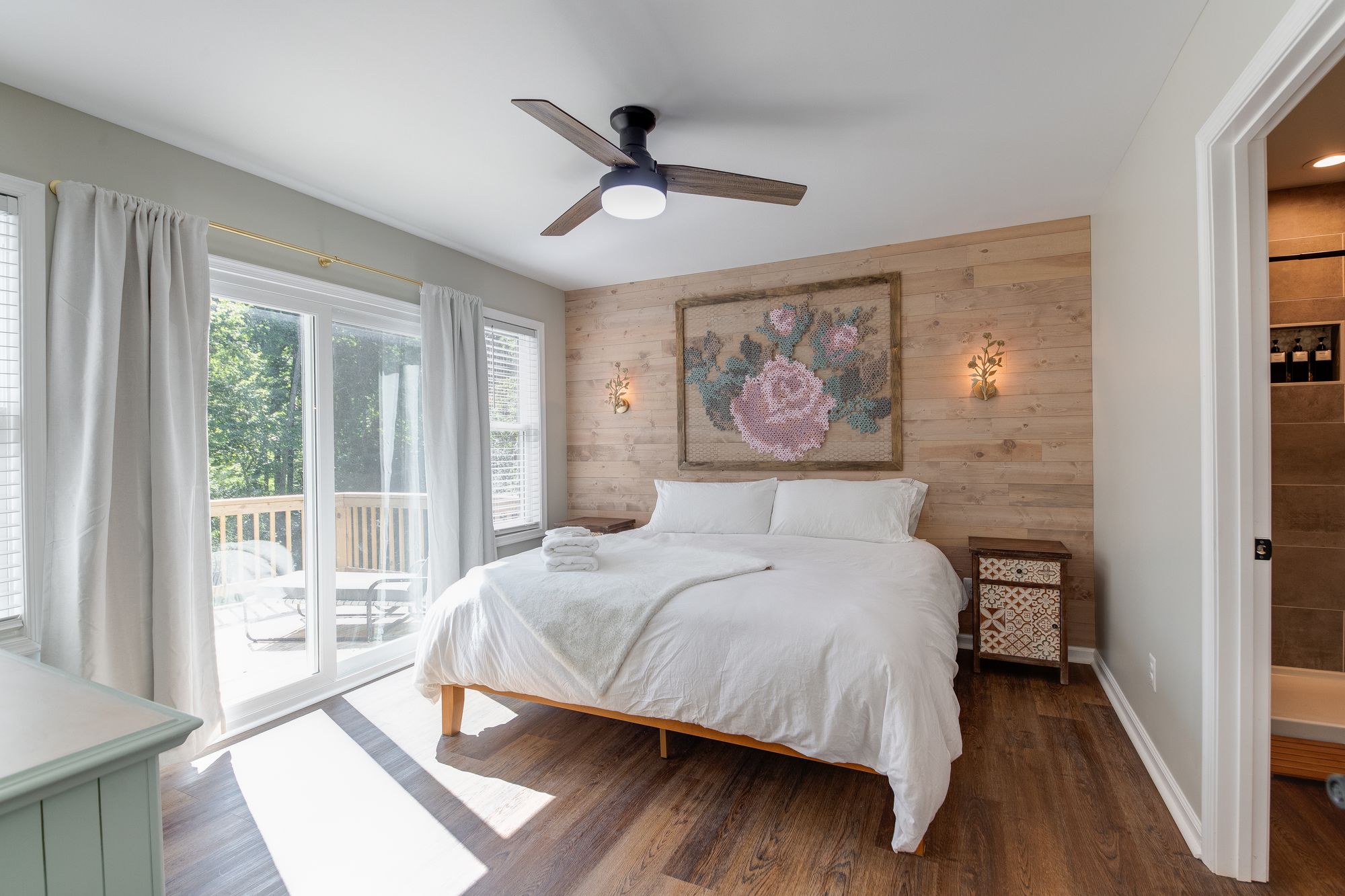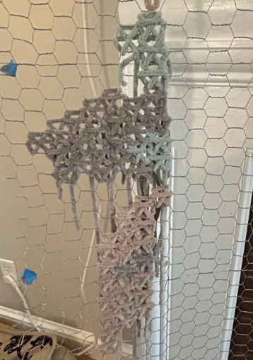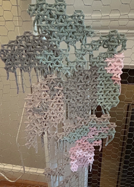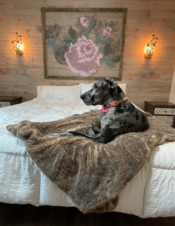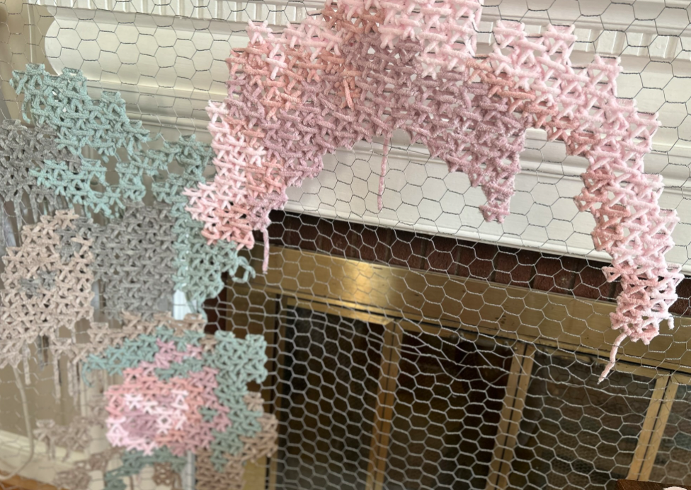 In my first blog post, I wanted to share the first project that I made for our recently opened Airbnb in the Shenandoah Valley, the Wild Azalea House (cute name, right?). I used chicken wire and yarn to build a large scale (4' by 5') cross stitch that is now hanging in all its glory in our main king bedroom above the bed. It adds a uniqueness to the room, and I can guarantee you that no other Airbnb homes in the region have this ๐.