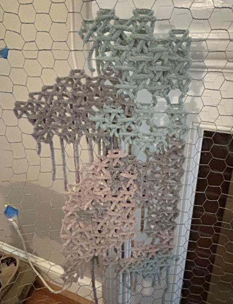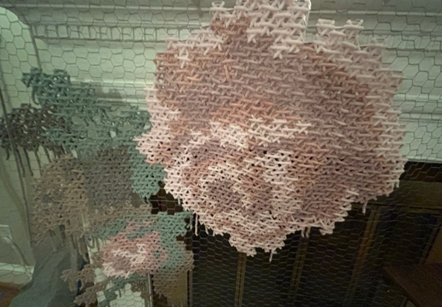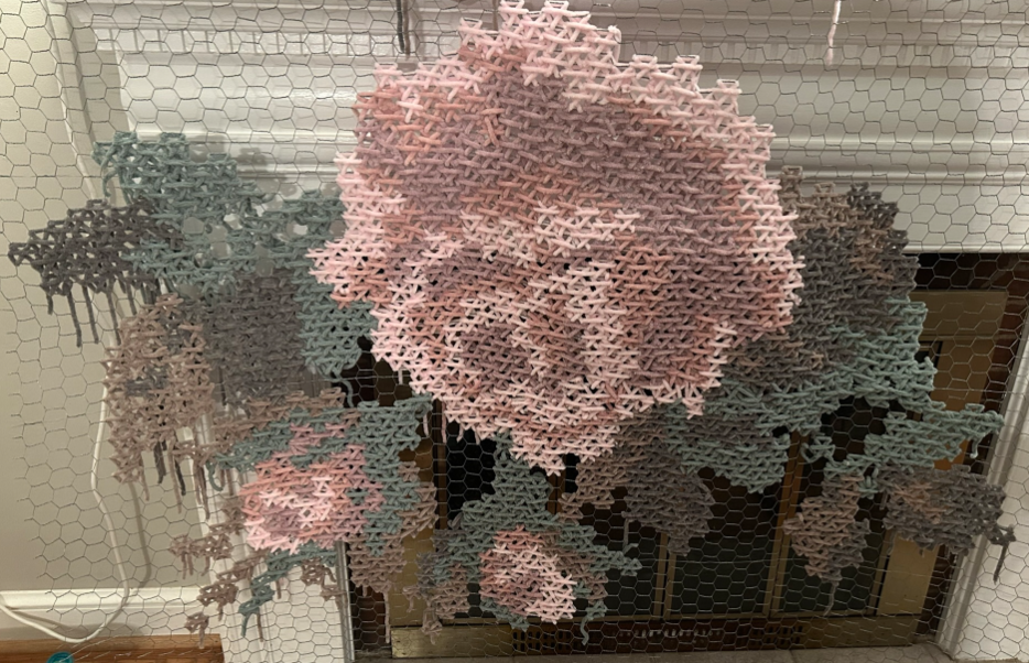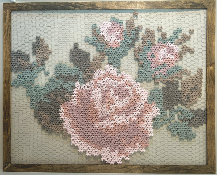 This large scale cross stitch was a project inspired by convenience. A fellow teacher friend of mine (I was teaching high school computer science at the time) had some leftover chicken wire from a homecoming float that she planned to throw away. I decided to take it home not really knowing what would come of it, but I had a feeling it could turn into a cool project. Coincidentally, during a similar time frame I also had been inspired by cross stitch patterns on Pinterest like the ones in the gallery below. Soon enough my brain made the connection that I could use the chicken wire to build by very own cross stitch art ๐ชก.