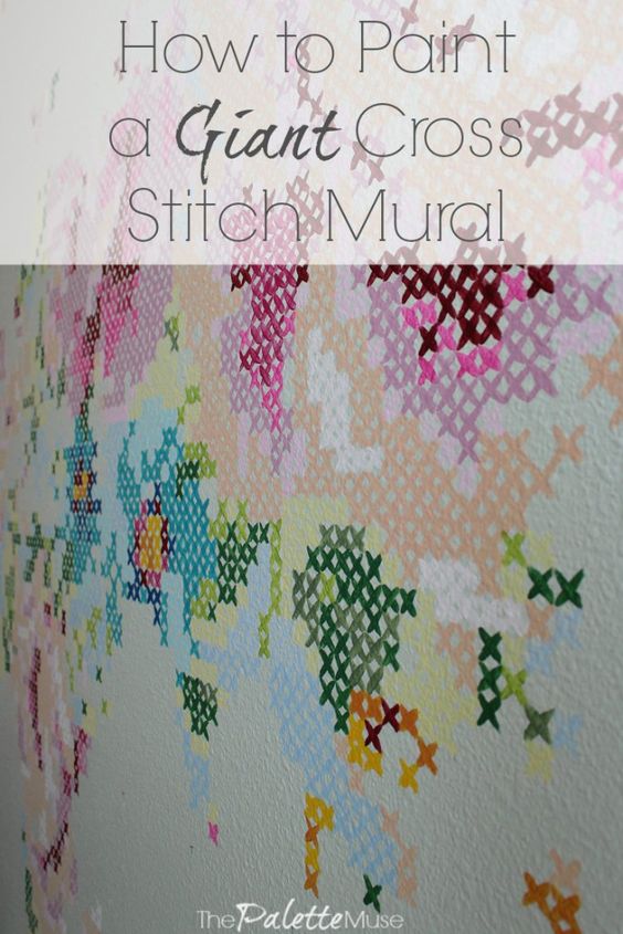 - Hang up your work and admire it. To hang this large scale cross stitch, I drilled a couple of screws ๐ช into our wall making sure that they were level and hung the cross stitch on them. I then used a staple gun to secure the chicken wire to the wall to ensure there weren't any wonky spots. Below is a picture of what it looks like in the room.